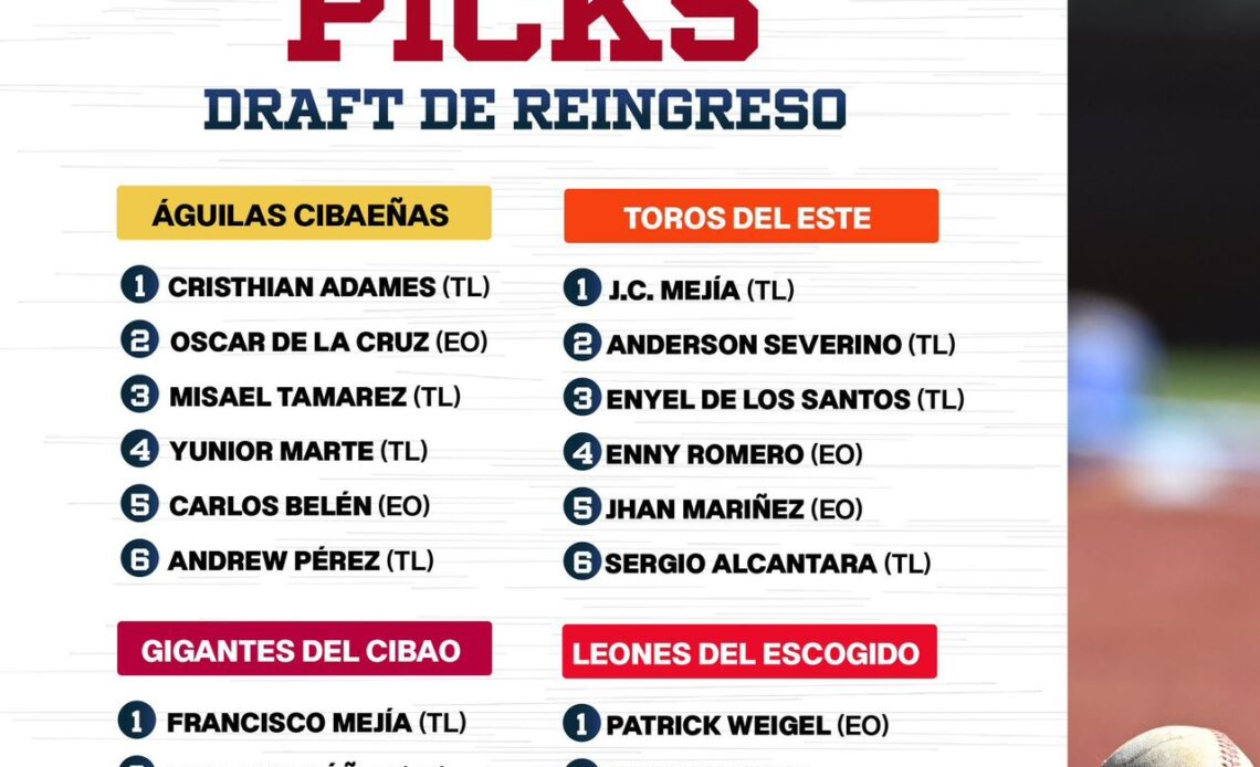 SANTO DOMINGO: Los Leones del Escogido, Águilas Cibaeñas, Toros del Este y Gigantes del Cibao prefirieron armarse con picheo, seleccionados en el draft de reingreso de los descalificados equipos: Tigres del Licey y Estrellas Orientales.
