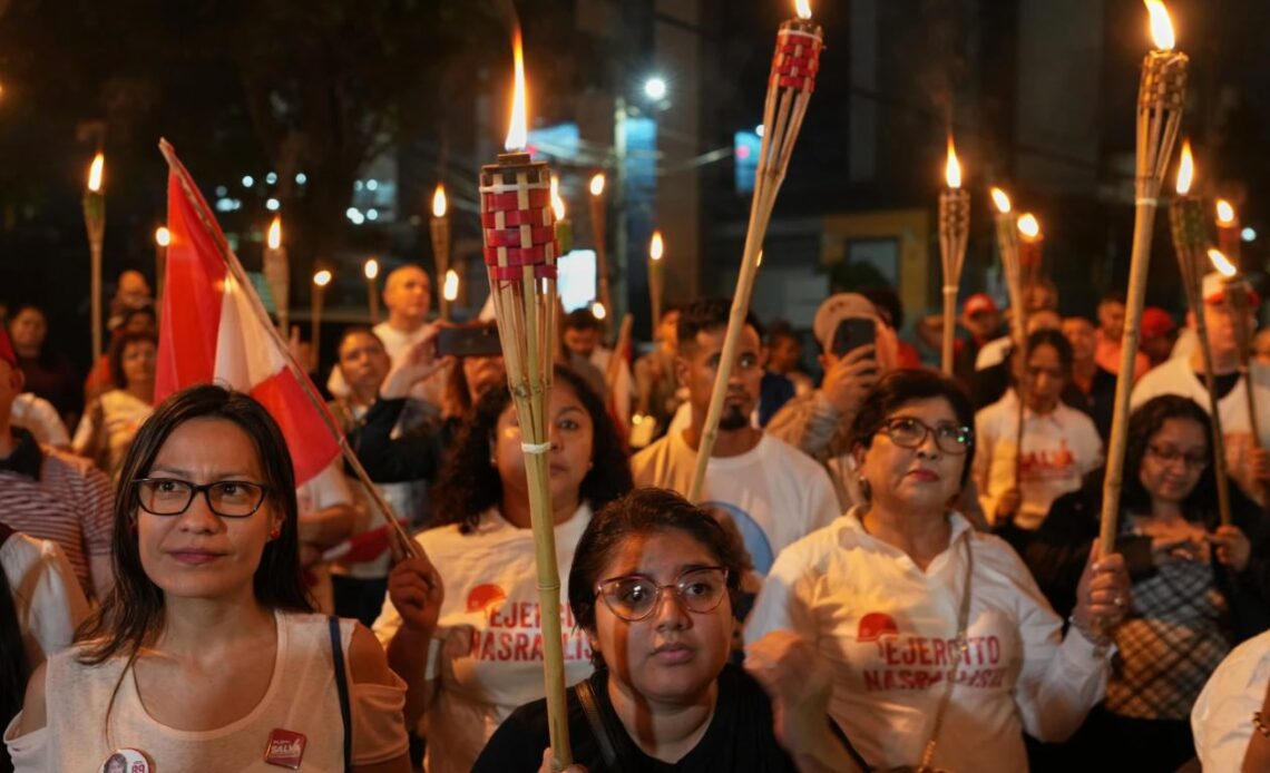 Un grupo de liberales salió la noche del lunes a las calles con antorchas, cerca de donde se encuentra el comando de campaña del Partido Liberal, como muestra de apoyo a Nasralla.