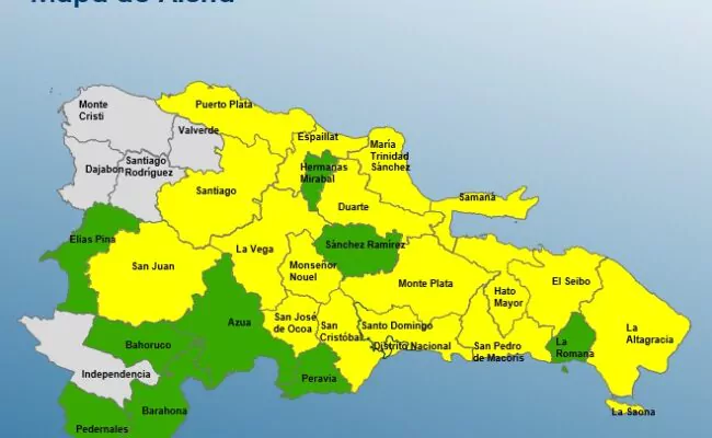 SANTO DOMINGO: El Centro de Operaciones de Emergencias amplió los niveles de alerta por las lluvias que se han estado generando y que continuarán durante los próximos dos días, debido a la incidencia de una vaguada y un sistema frontal
