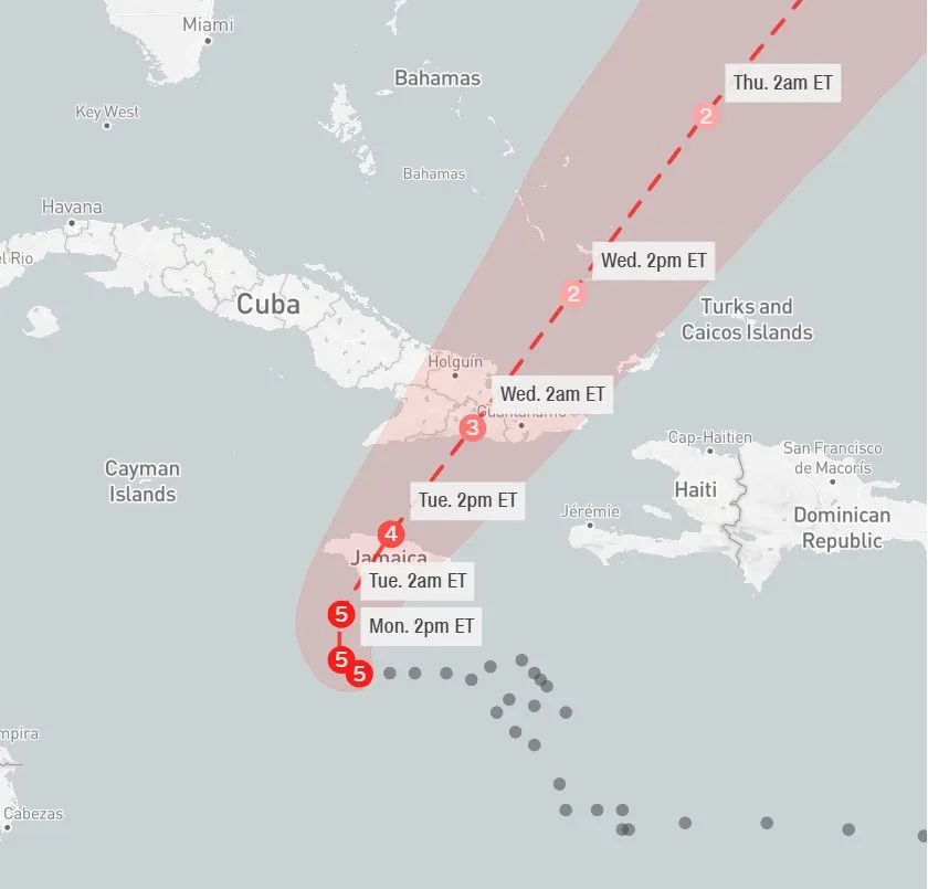 El NHC pidió a la población de Jamaica permanecer en refugios seguros y no salir bajo ninguna circunstancia, ya que se esperan inundaciones y deslizamientos de tierra catastróficos desde este lunes hasta el martes.