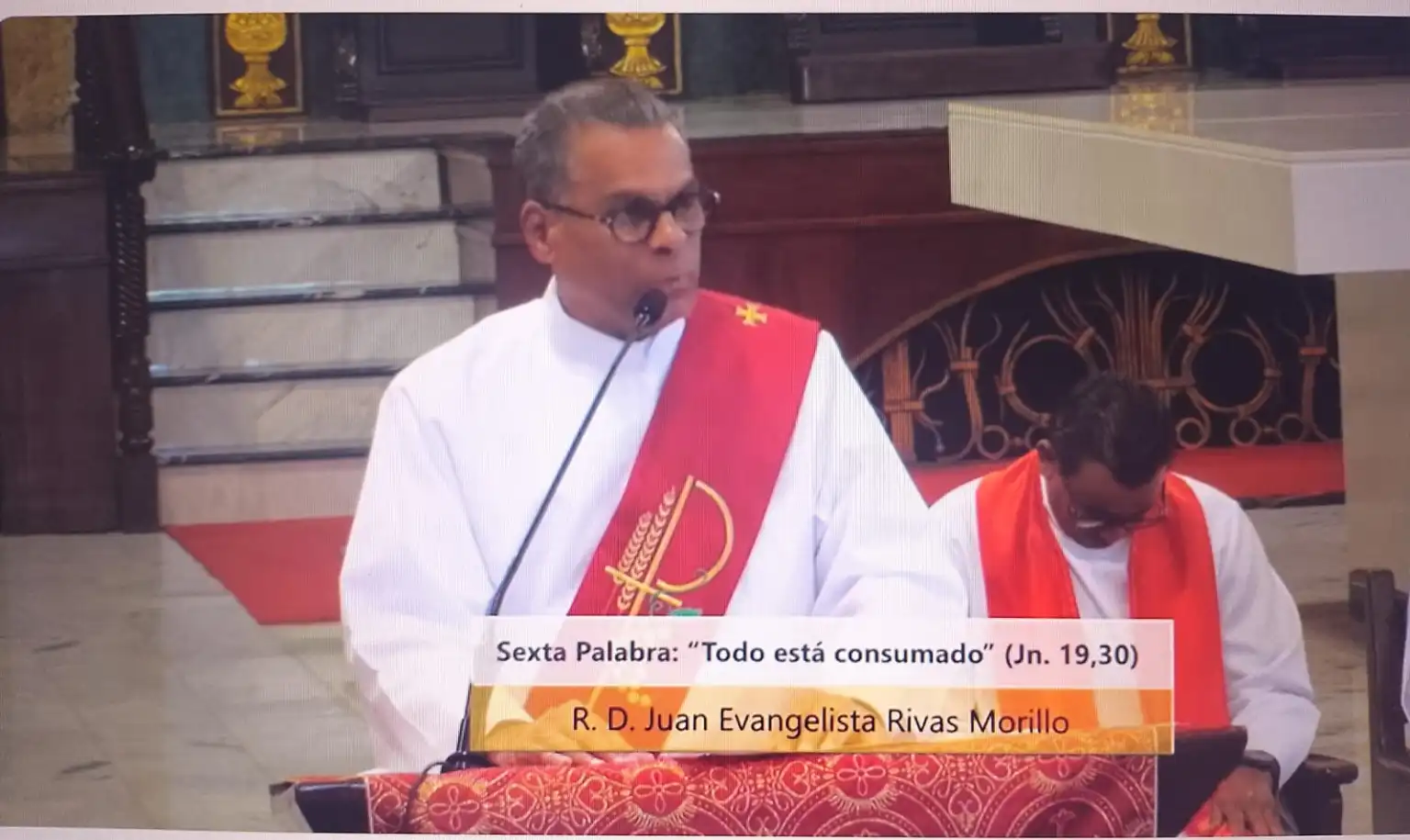 SANTO DOMINGO: La sexta palabra de Jesús en su Sermón de las Siete Palabras es del “triunfador y del corredor que llega a la meta”, esta reflexión fue conducida este Viernes Santos por el Reverendo Diacono Juan Evangelista Rivas Morillo de la Parroquia Divino Niño Jesús, Las Praderas, en la Catedral Primada de América de Santo Domingo.