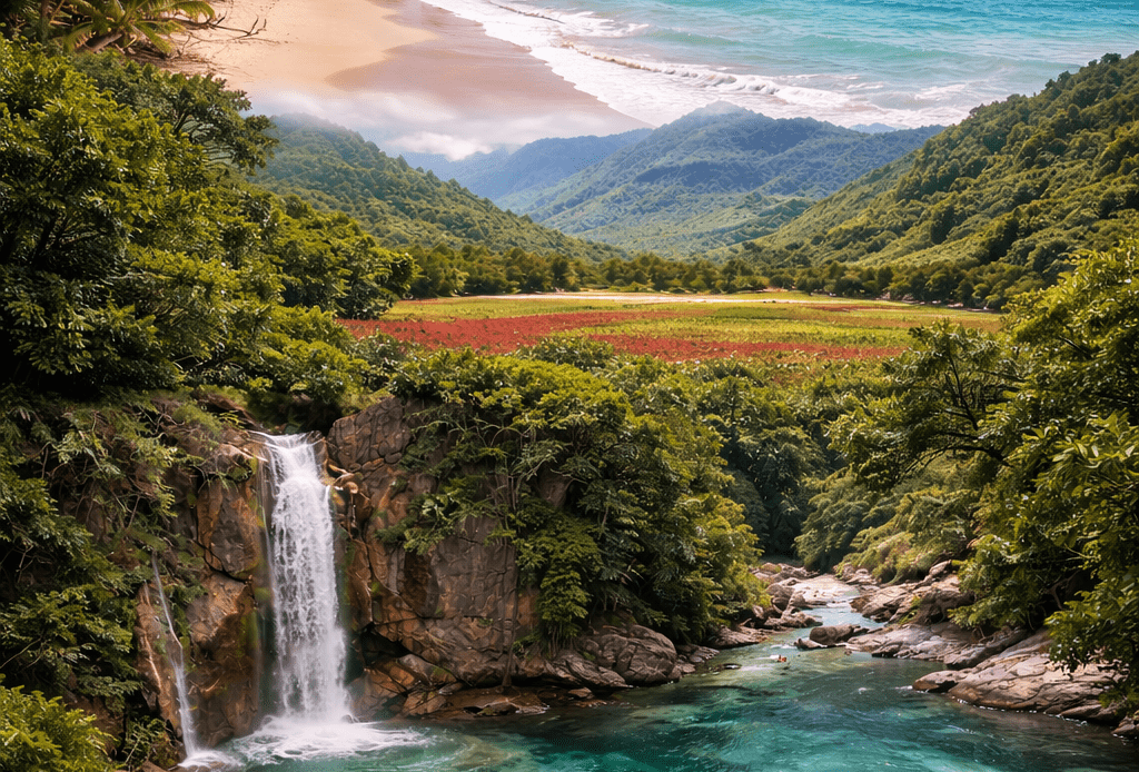 Playa Rincón, frecuentemente catalogada entre las mejores del Caribe, destaca por su extensión, aguas claras y acceso relativamente limitado, lo que reduce la masificación. Por su parte, El Valle ofrece una experiencia distinta: una playa rodeada de montañas cubiertas de vegetación, donde el sonido predominante es el del mar y la naturaleza.
