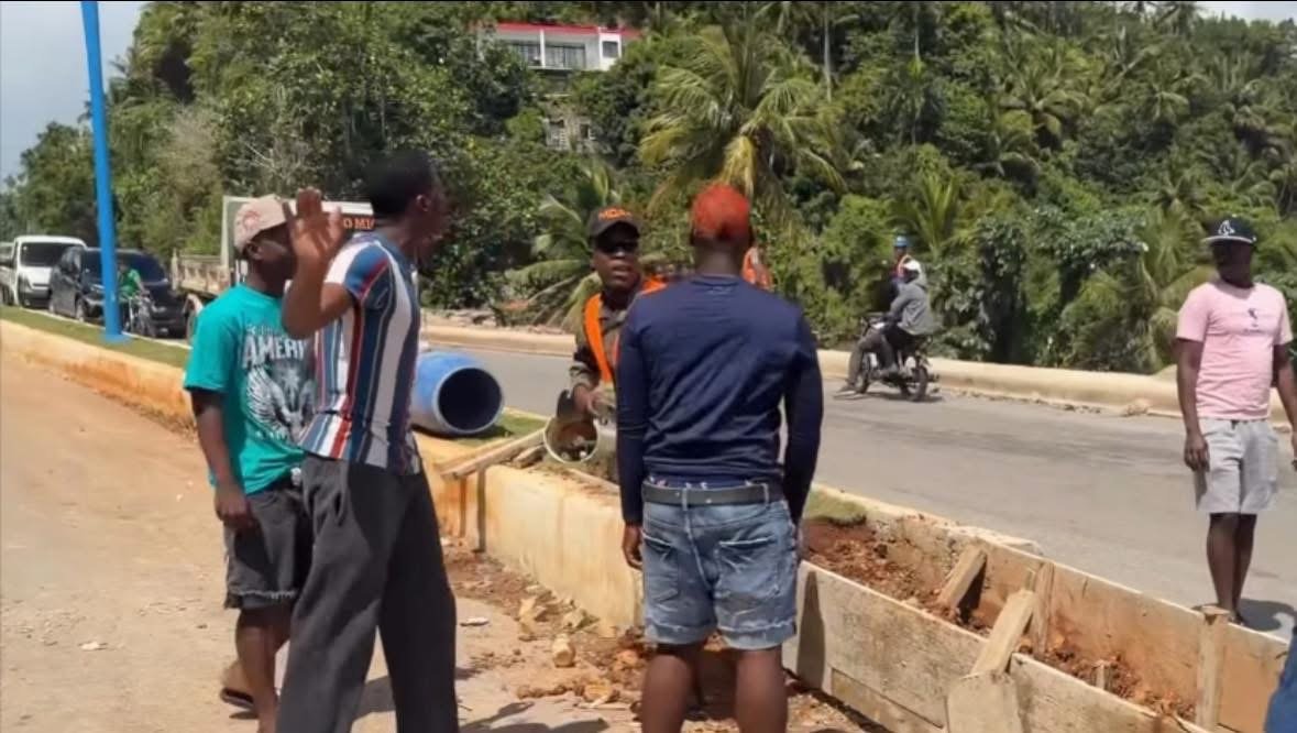SAMANA: Momentos de tensión se vivieron en la comunidad del barrio El Play, luego de que residentes se enfrentaran verbalmente con militares y personal del Ministerio de Obras Públicas, tras el inicio de trabajos para cerrar la entrada principal al sector del Play Municipal.