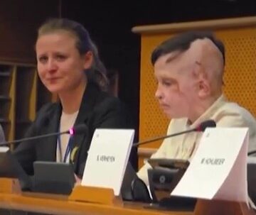 UCRANIA: Una intérprete no pudo contener las lágrimas, mientras traducía el relato de Roman Oleksiv, un niño ucraniano de 11 años que sobrevivió a un ataque ruso a un hospital en 2022.