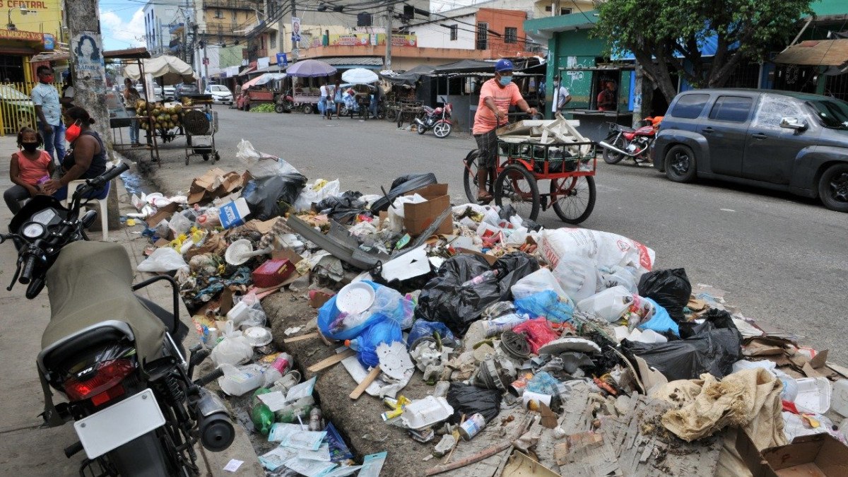SANTO DOMINGO OESTE: Un vertedero improvisado se ha formado frente a la escuela pública Doña Emma Balaguer de Vallejo, en el sector Las Palmas de Herrera, donde transeúntes y residentes denunciaron la falta de recogida de desechos por parte del Ayuntamiento de Santo Domingo Oeste.