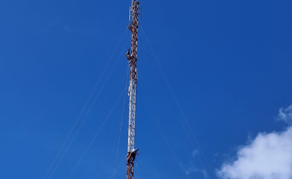 SANTO DOMINGO OSTE: Están desmontando una antena del Sistema de Emergencia 9-1-1, luego de la denuncia de que esta pone en riesgo la vida de estudiantes, profesores y administrativos de la escuela primaria Cristobalina Batista Tavárez, en Santo Domingo Oeste.